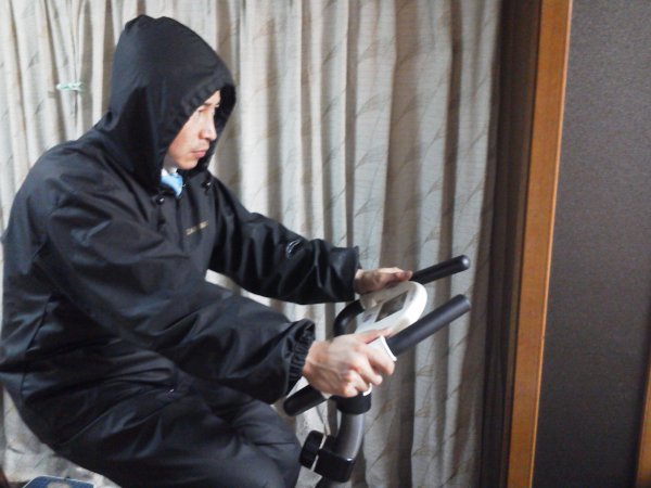 昨日と今日はサッカー見ながらしっかり着込んでエアロバイク漕ぎました。